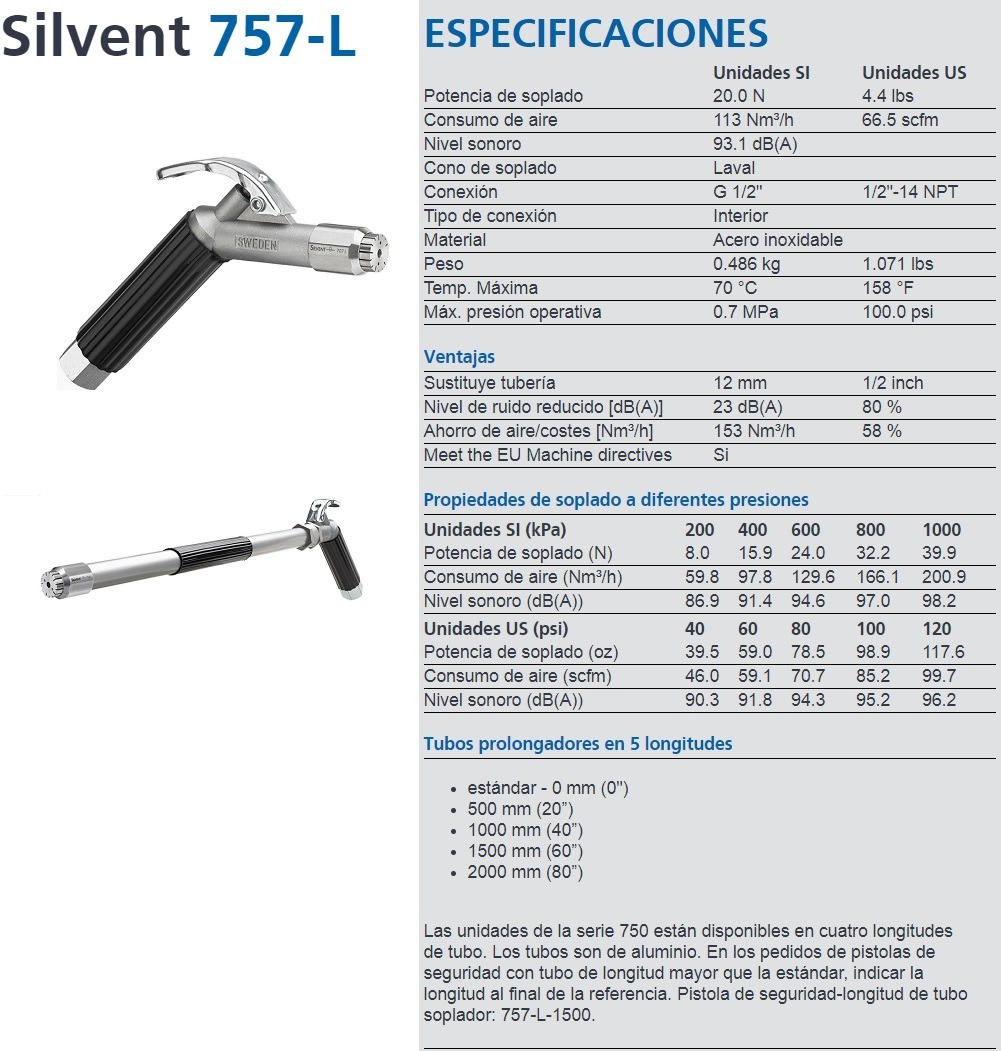 Con Extensiones de 500, 1000, 1500 y 2000 mm